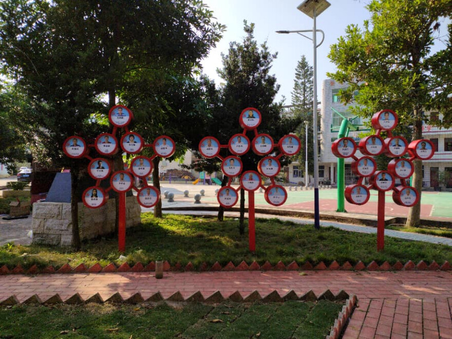 袁培枝,男,中共党员,新寨村人,小学高级教师,1973年5月至2007年9月在新塘小学任民办教师,1997年任新塘小学校长,2007年9月退休。时刻把德育工作放在教育工作的首位,教书为育人,他常说一句话:“教育的目的,是替年轻人的终生自修作准备。”