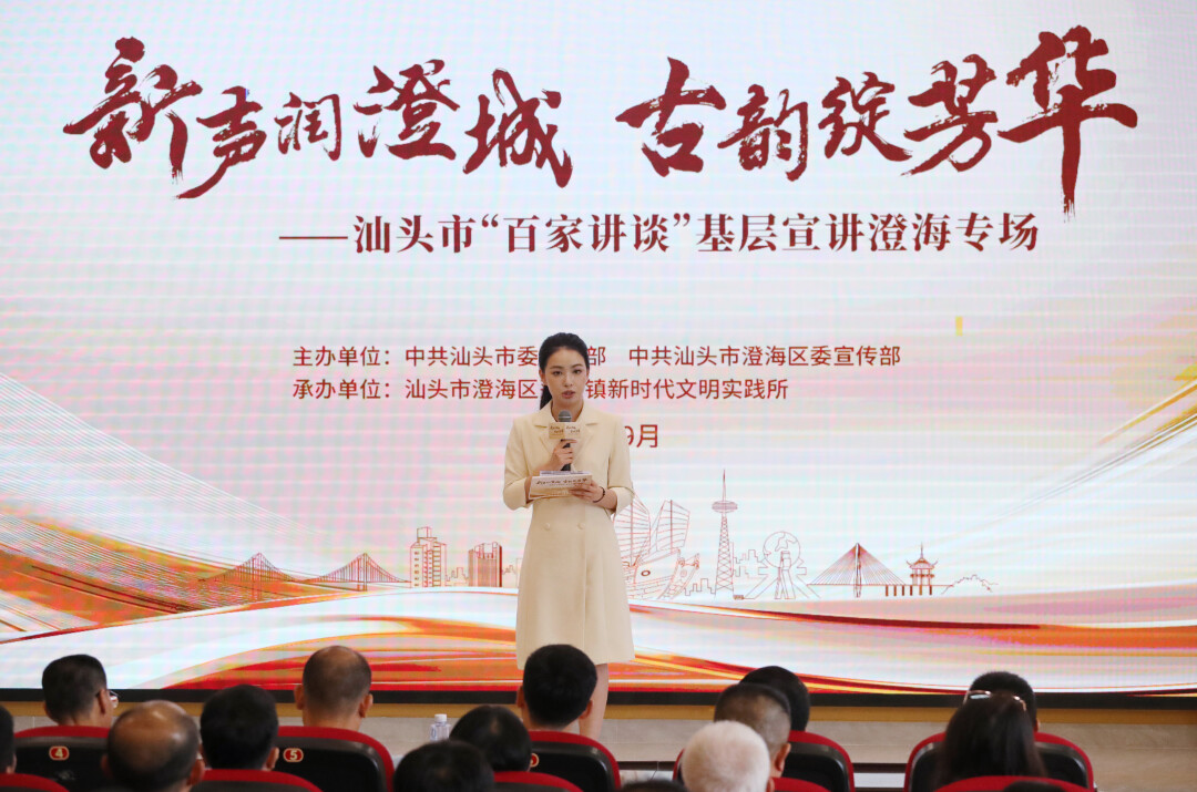 近年来,汕头市澄海区始终深耕基层理论普及,坚持以“我们的新征程·澄海故事汇”宣讲品牌为引领,积极探索新时代基层理论宣讲新模式,通过建强队伍、打磨内容、融合阵地,不断推动党的创新理论“飞入寻常百姓家”。而这场基层宣讲,正是这一理念的生动实践。