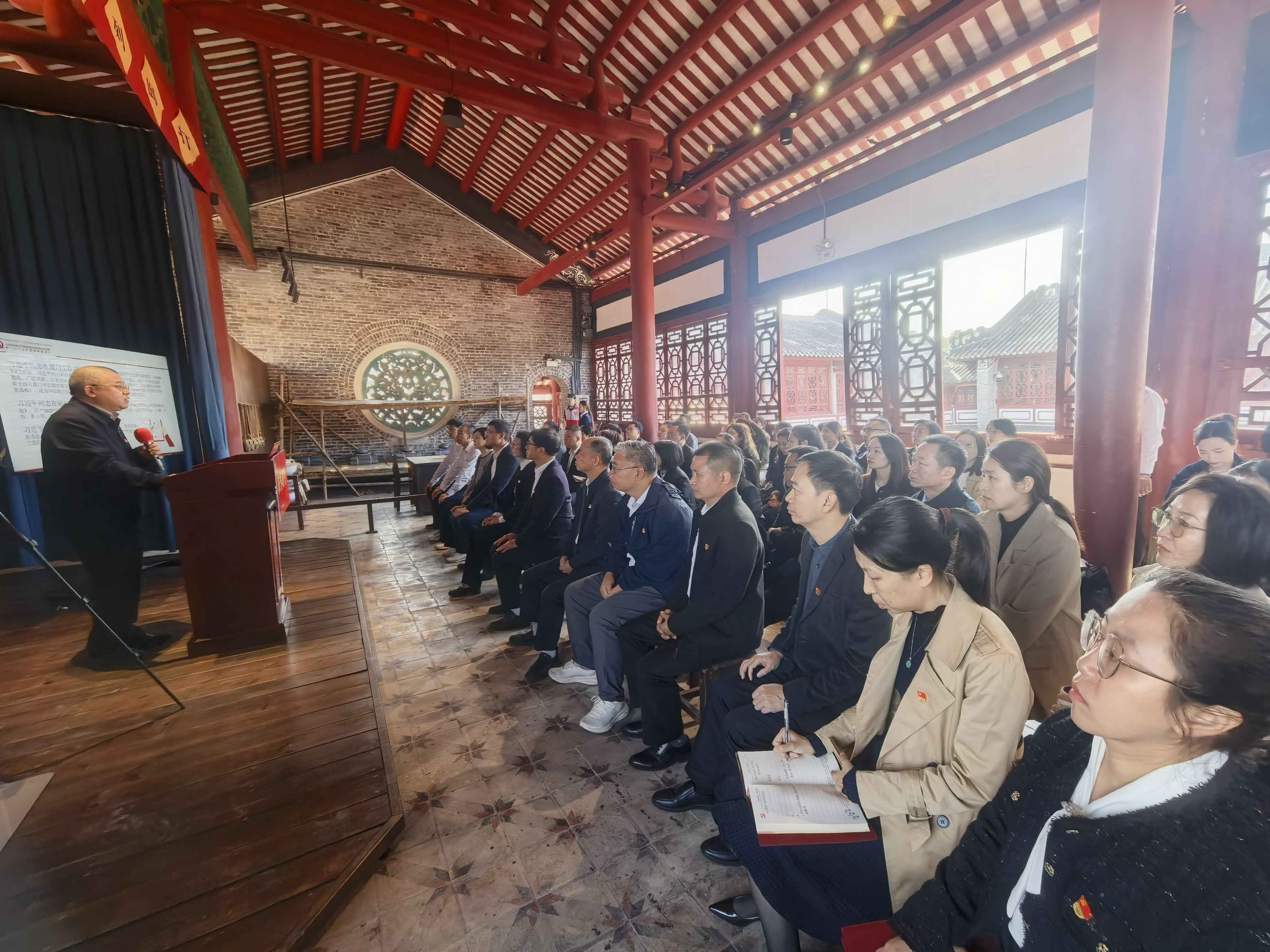 在潮州市,一场场带着泥土芬芳、洋溢人文温度的宣讲活动走进古厝庭院、圩镇客厅、商圈阵地、红色讲台。太平街道程公馆内,“客栈茶舍微讲堂”专场宣讲活动温馨启幕,湘桥区委宣讲团成员以“乘势而上 接续推进中国式现代化”为主题,大家围坐庭院,交流政策困惑与生活感悟,让新思想在古韵氛围中碰撞火花。