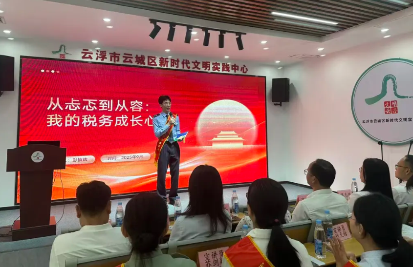 活动中,青年宣讲员以集体朗诵、个人宣讲等方式,用生动的语言分享了爱国主义的思想感悟:从税务青年感受百年青春薪火相传的磅礴力量,到黎倩同志在“英雄总机班”用忠诚书写使命担当的军旅故事;从缅怀革命先辈邓发,到三尺柜台上的爱国情怀;从科学巨匠卢永根的报国之心,到青年干部知行合一的实践之路,再到描绘乡村振兴的画卷。一个个感人至深的故事深深触动了现场听众,激发了爱国爱党、干事创业的内生动力。