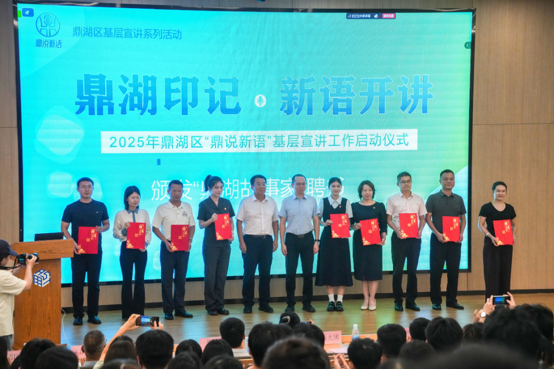 据悉,“鼎说新语”宣讲工作立足肇庆鼎湖区和肇庆新区实际,紧扣“高质量发展”主题,聚焦多方面内容,围绕培育“鼎湖故事家”宣讲队伍,整合基层力量和载体,形成“1+3+N”理论宣讲新格局。目前,两区已形成两百人的宣讲队伍,启动仪式后,他们将奔赴两区各领域各战线,持续深入推动习近平新时代中国特色社会主义思想和党的二十大精神进高校、进机关、进企业、进农村、进社区、进网站、进军营、进“两新组织”,进一步打通党的创新理论基层宣讲“最后一公里”。