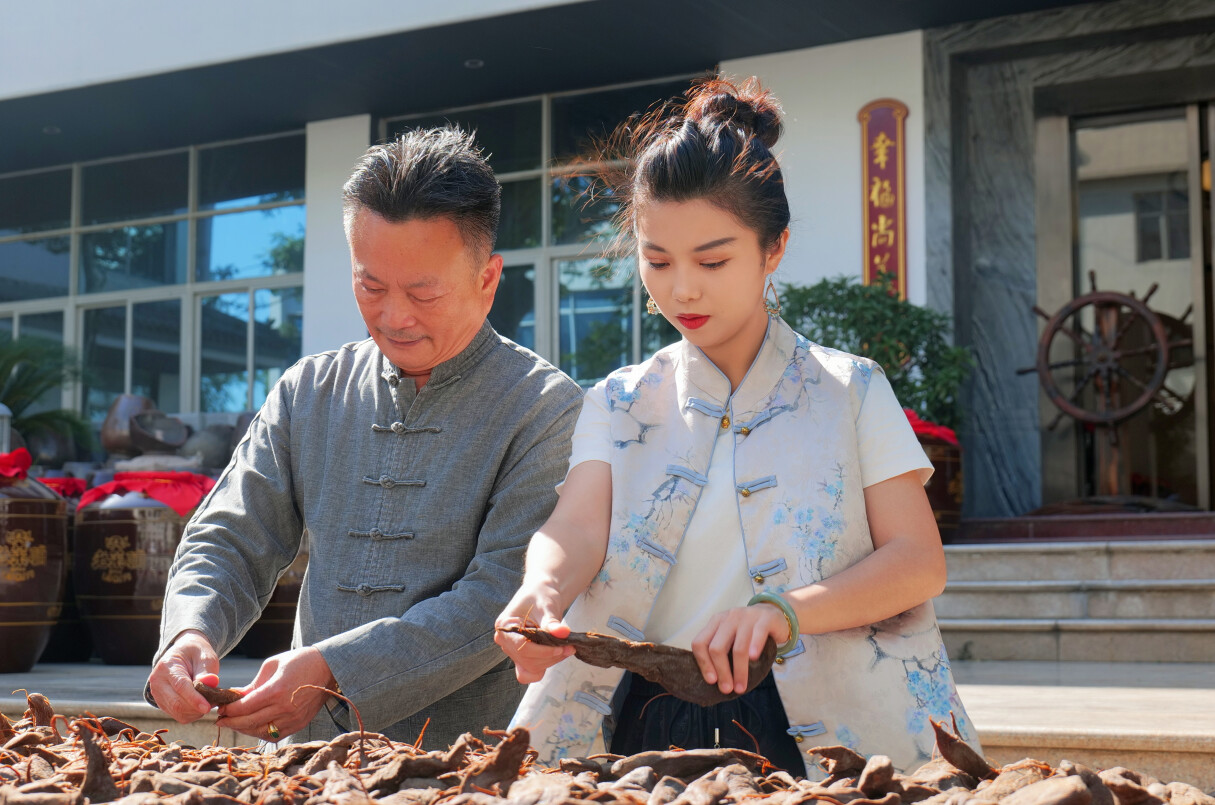 回来之后,我干的第一件事就是建档。老一辈他们认为酒香不怕巷子深,但我不这么认为,我认为宣传很重要。于是我们开始建档,并策划了第一本画册,紧接着建立了新媒体矩阵进行宣传推广。我发起了一个挑战,“挑战用老菜脯做100道菜”的美食教程系列视频,现在这个系列视频已经全部完成了。同时也把年轻人的元素与传统的老菜脯进行结合,我研发了老菜脯奶茶,这款老菜脯奶茶当时推出的时候,还一度登上了汕头的网红打卡榜。我用20年老菜脯跟黑芝麻、花生结合,做成休闲零食;用36年的老菜脯跟陈皮、老香黄结合,做成固体饮料,就像咖啡一样,一条一杯,直接冲了就可以喝,满足年轻人快速便捷的消费方式。