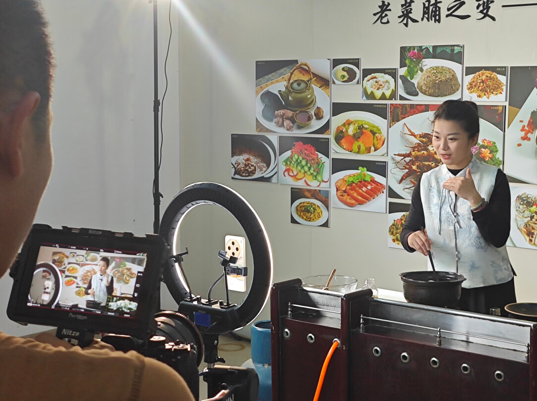高玉婷在拍摄“挑战用老菜脯做100道菜”的美食教程系列视频