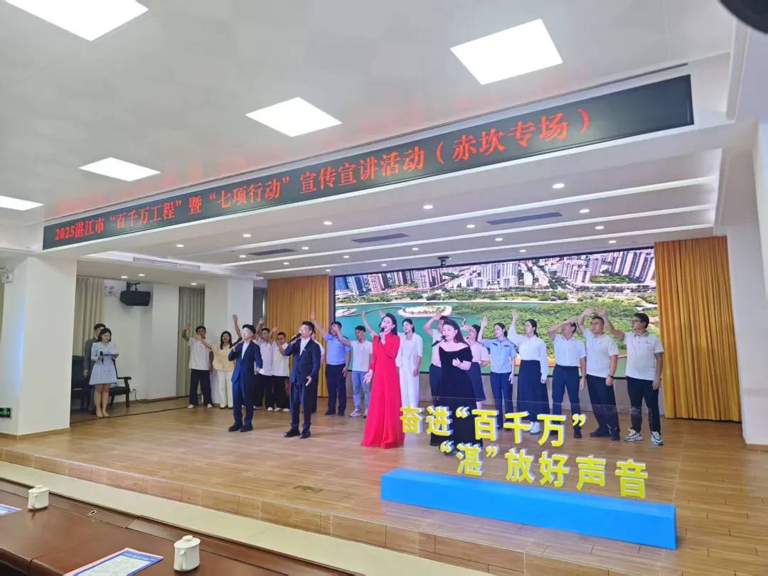 10月15日,由湛江市委宣传部指导,市委讲师团、市文明办主办,赤坎区委宣传部承办的奋进“百千万” “湛”放好声音——2025湛江市“百千万工程”暨“七项行动”宣传宣讲活动(赤坎专场)在赤坎区会议中心举办,约200余人参加了活动。
