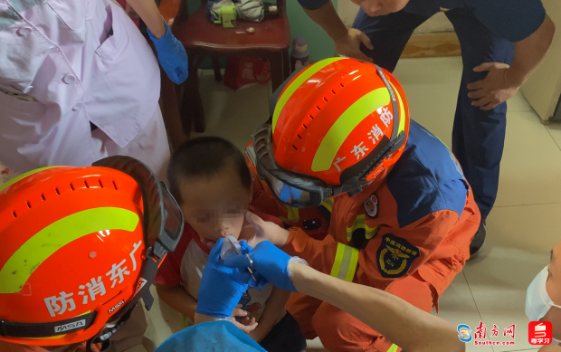 7月12日11时53分,广州市花都区炭步镇石湖村,一名男孩舌头被塑料瓶夹住,情况危急,当地消防救援人员迅速赶赴现场处置。