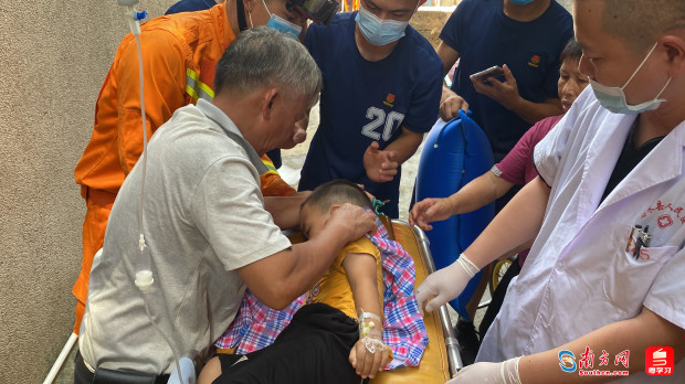 7月13日9时40分,揭阳市惠来县溪南村有一小孩受伤被困急需救援。当地消防救援人员接警后立即赶赴现场处置。