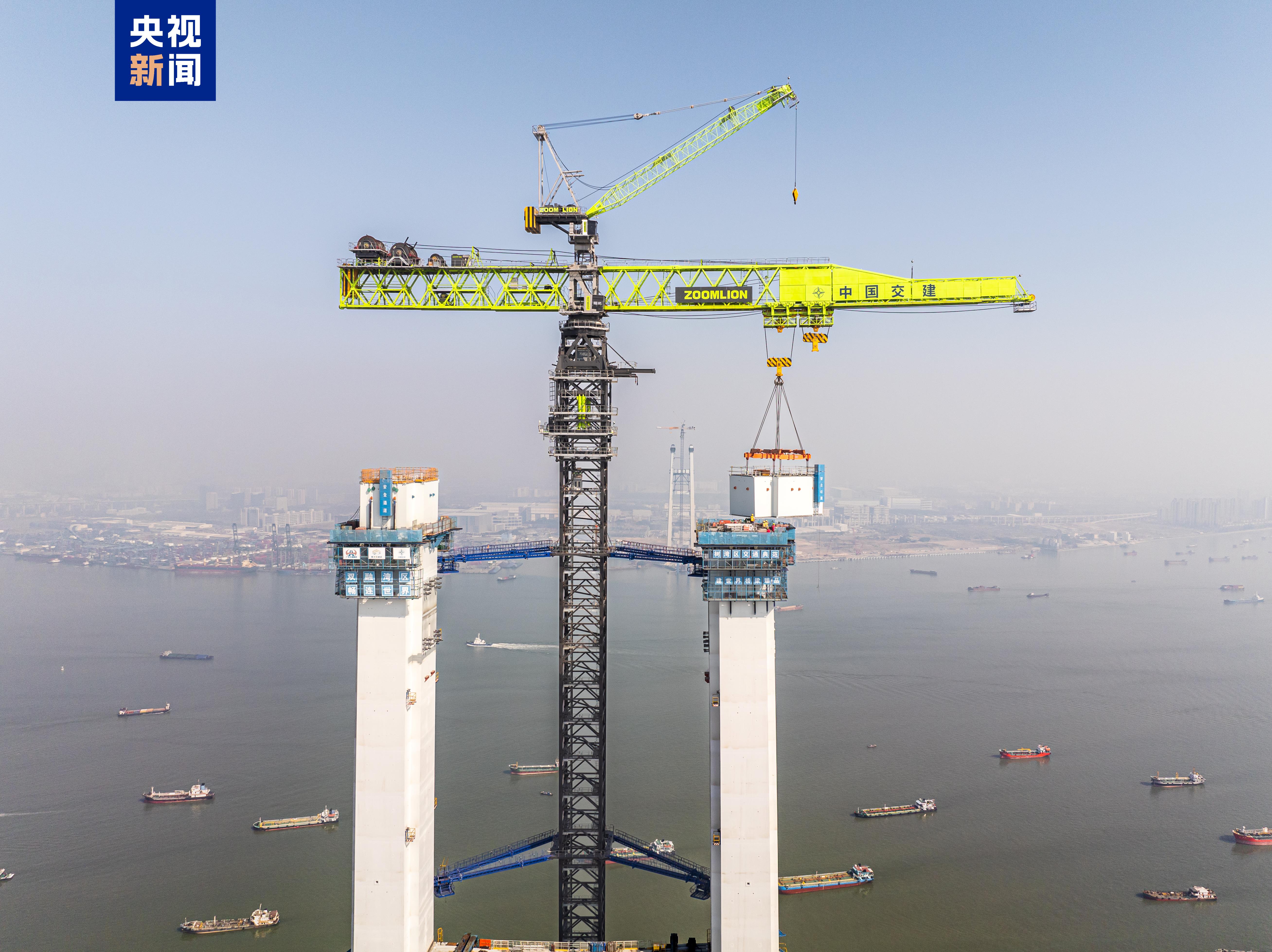 1月22日,记者从广东交通集团获悉,粤港澳大湾区核心枢纽工程——狮子洋通道狮子洋大桥T55节段成功吊装,主塔高度突破300米。