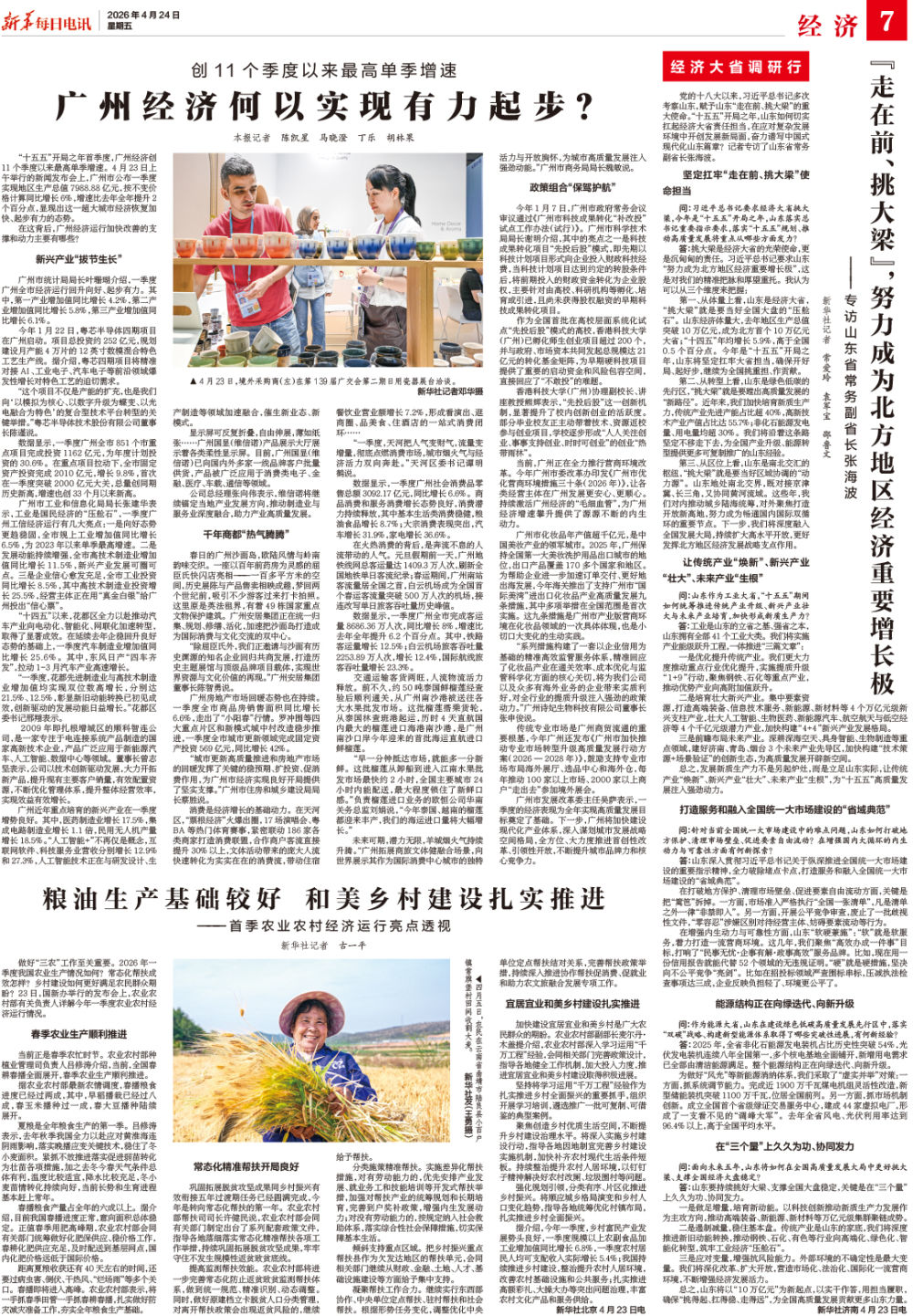 广州市发展改革委主任吴萨表示,一季度的经济表现为全年实现高质量发展目标奠定了基础。下一步,广州将加快建设现代化产业体系,深入谋划城市发展战略空间格局,全方位、大力度推进首创性改革、引领性开放,不断提升城市品牌力和核心竞争力。