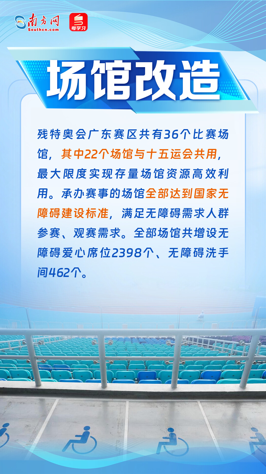 本届残特奥会首次由粤港澳联合承办。为了办好这一历史性的盛会,广东积极携手港澳,秉持“绿色、共享、开放、廉洁”的办赛理念,贯彻“简约、安全、精彩”的办赛要求,高标准高质量推动残特奥会各项筹备工作。下面,让我们通过一组海报,一起来了解广东为了办好残特奥会都做了哪些筹备工作?