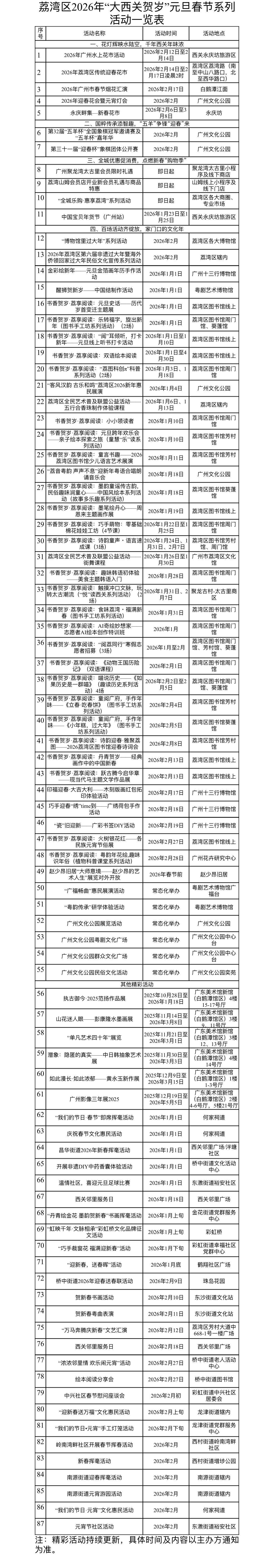 荔湾区2026年“大西关贺岁”元旦春节系列活动一览表 通讯员供图