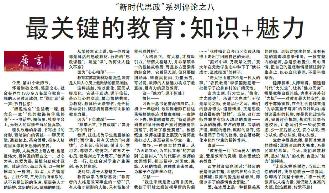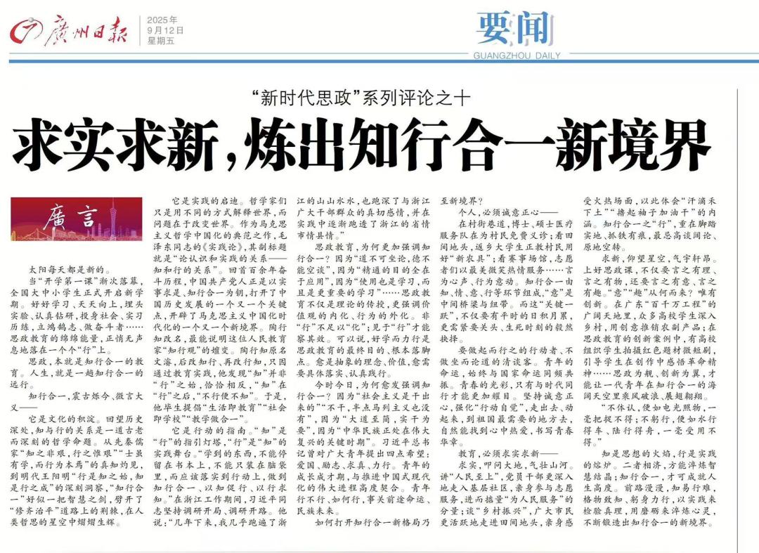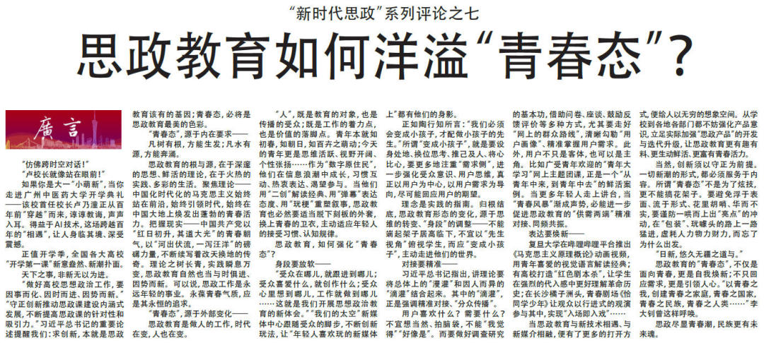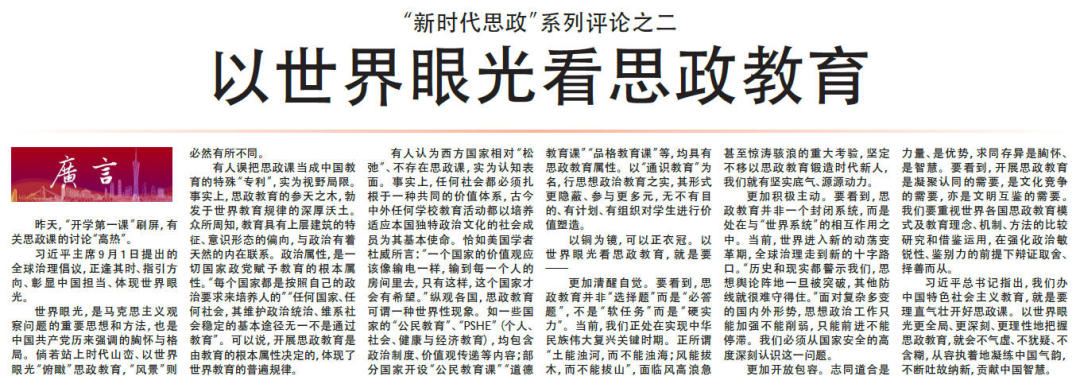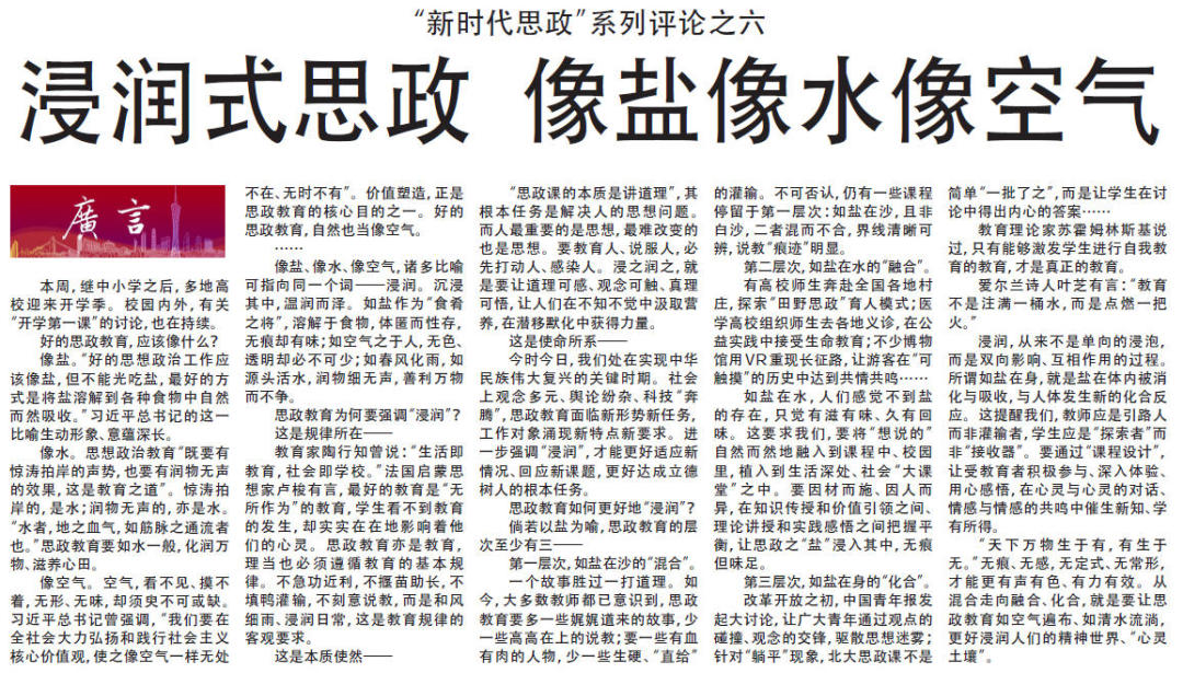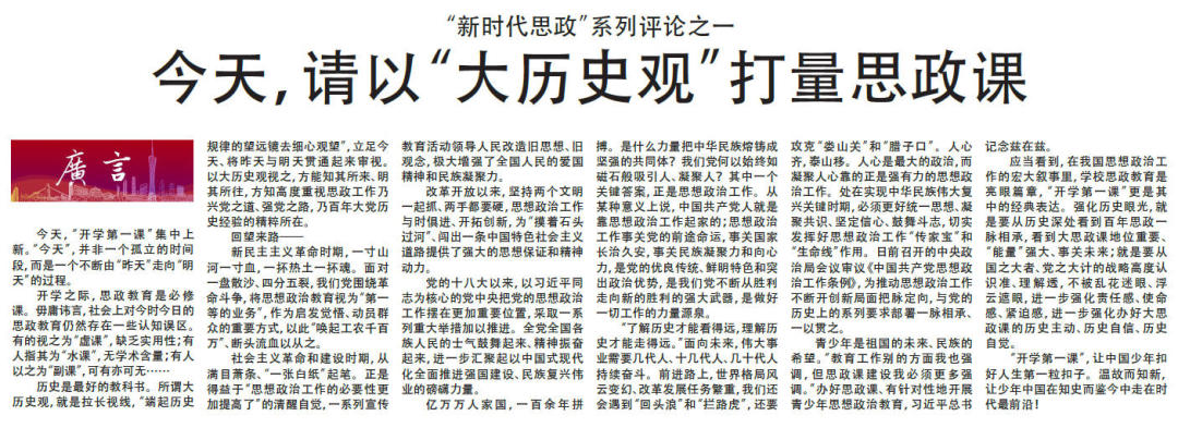 9月1日以来,广州日报连续推出十篇“新时代思政”系列评论。