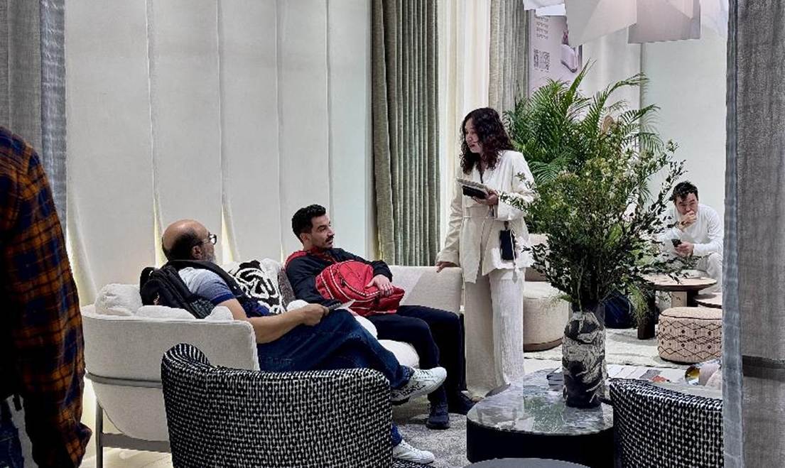 展位上,一款名为“乙尊”的沙发,造型灵感来自古典陈器,线条简洁却韵味悠长。