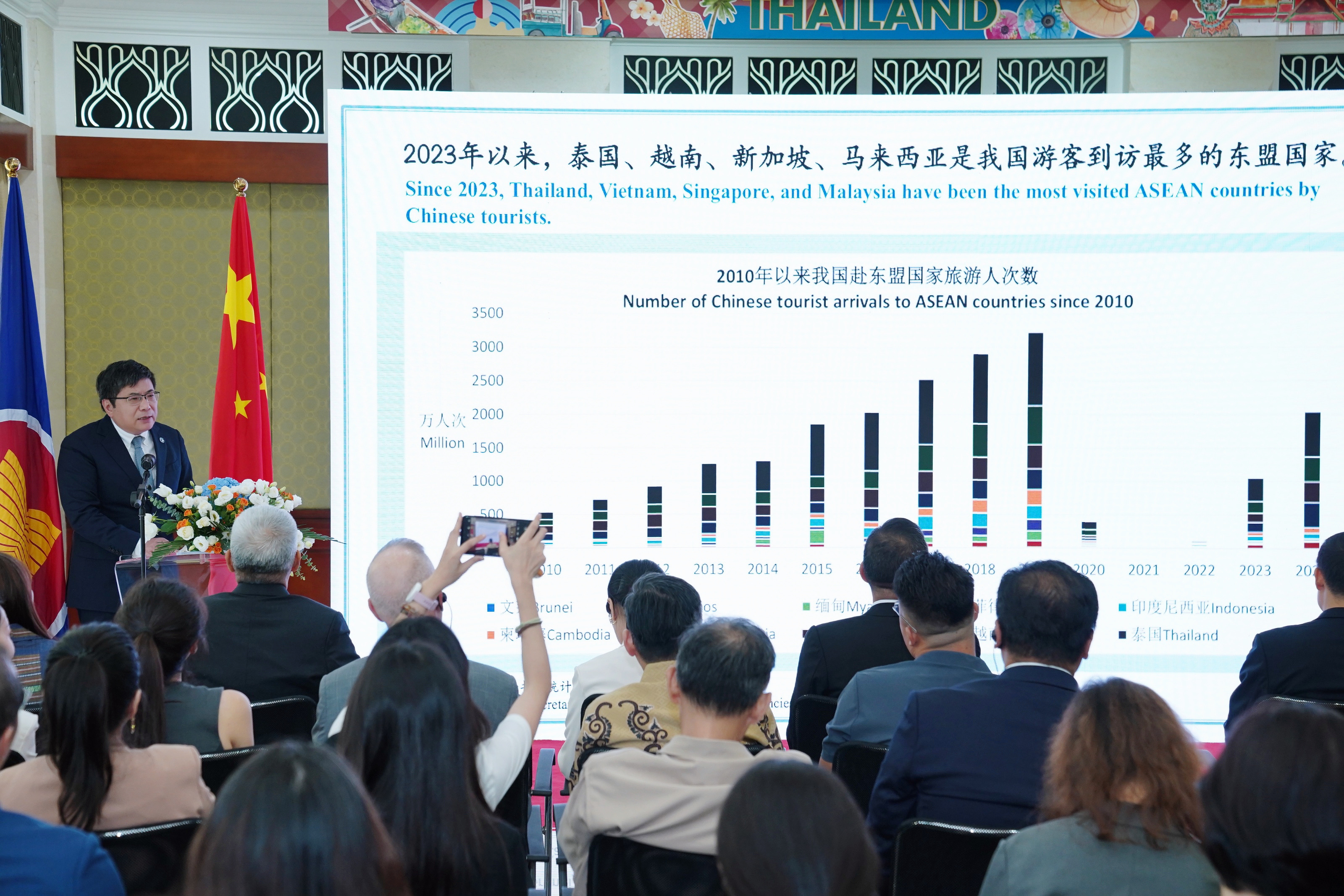 中国—东盟中心秘书长史忠俊在开幕致辞中表示,旅游是连接中国与东盟人民心灵的重要桥梁,是双方人文交流的支柱领域。他高度评价上半年取得的显著成果,指出签证便利化政策的持续深化是推动互访规模接近翻倍的关键动力。目前,中国已与新加坡、马来西亚、泰国实现全面互免签证,与其他东盟国家的签证手续也得到大幅简化,为人员往来提供了极大便利。