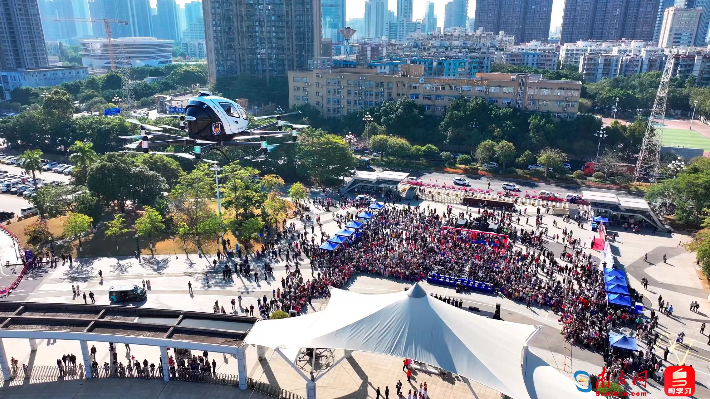 据广州黄埔公安消息,1月10日,广州黄埔公安在黄埔体育中心举办“四十载守护平安 110勇毅前行”主题宣传活动。活动现场,广州黄埔公安装备序列的重磅 “新成员”——EH216S 警用载人无人机正式入列,这也是全国公安系统首台正式列装且获适航证的警用载人无人机。