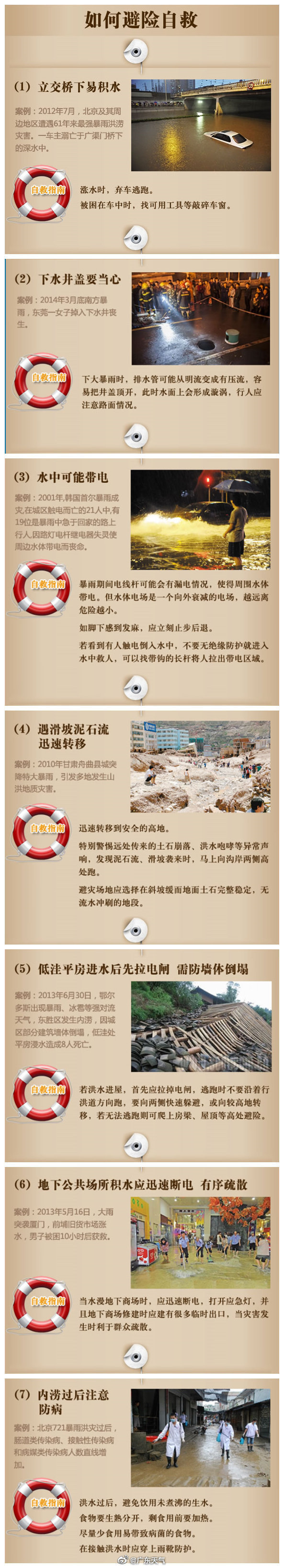 二、山区地区注意防范山洪、山体滑坡、泥石流等地质灾害。依山而居的乡镇发生山体滑坡、泥石流等地质灾害的风险是高之又高,建在山涧或山坡旁的房屋,在暴雨期间除了留人夜间值守,还要密切关注水情和山体变化,如有异常应马上撤离。