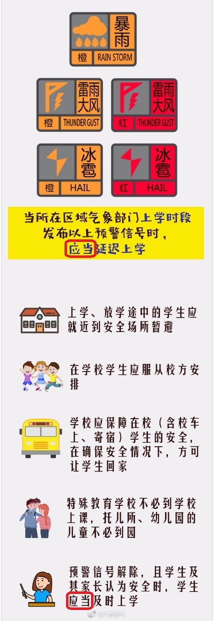正值上班、上学高峰期,准备上学的朋友请对照指引和预警信号情况,可以延迟上学或应当延迟上学,上学路上注意安全。