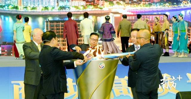 “同心聚焰·薪火相传”主火炬点火仪式拉开了大会开幕式序幕。火炬由5位海内外客商代表、客籍侨领及青年代表共同点燃,象征着全球客商同心同德、携手前行的精神火炬代代相传,也寓意着梅州与全球客商在新时代背景下深化合作、共促发展的美好愿景。