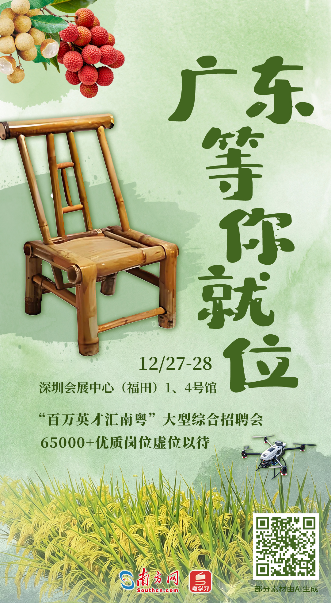 “稻花香里说丰年”,这把“竹编椅”邀英才领略千里沃野。广东农林牧渔业总产值突破万亿元,荔枝、龙眼、金柚等岭南特色水果享誉全国,智慧农业、绿色农业、休闲农业融合发展,山川秀美,风华焕新,乡村振兴的画卷正等你执笔描绘。