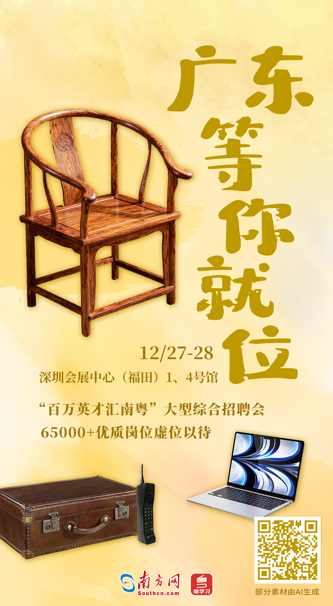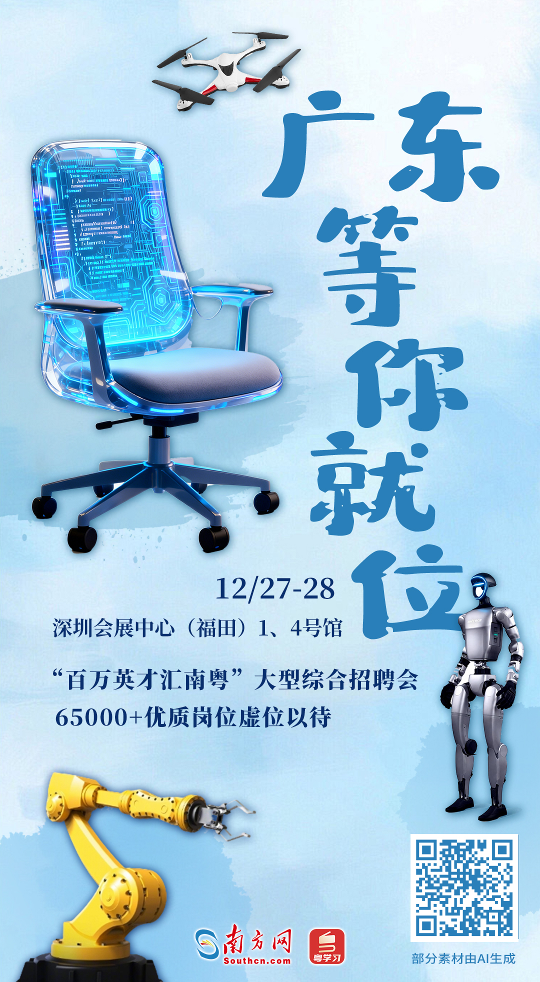 全省21个地市联动、超65000个优质好岗虚位以待!12月27日-28日,“百万英才汇南粤”大型综合招聘会将在深圳会展中心(福田)举行。广东,再一次向全球英才发出“青春合伙人”的邀约:人才,请“坐”!