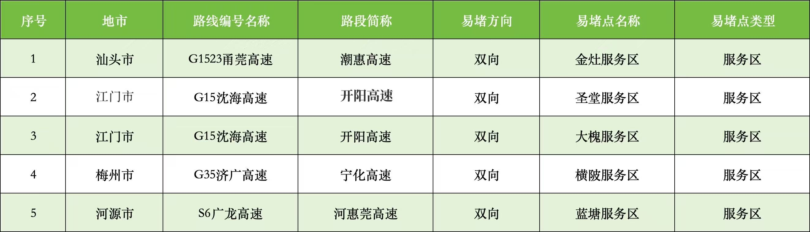 二、繁忙服务区5处