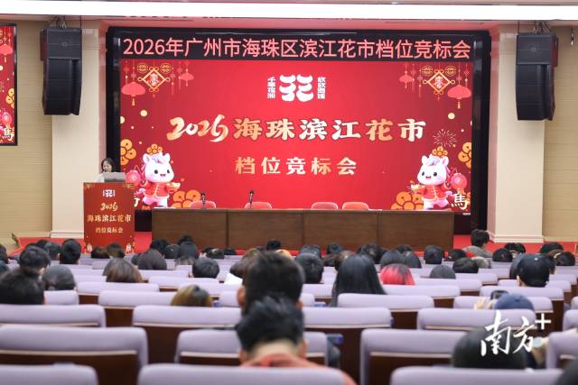 记者在现场了解到,今年海珠滨江花市回归“以花为主”的核心定位,分别设有鲜花档、盆花档、工艺品档和年宵品档,花档比例提高到63%。根据竞标结果,2026年海珠滨江花市档位竞标最高价为:鲜花棚头档12800元、盆花棚头档10100元、年宵品棚头档140100元、工艺品棚头档38000元。