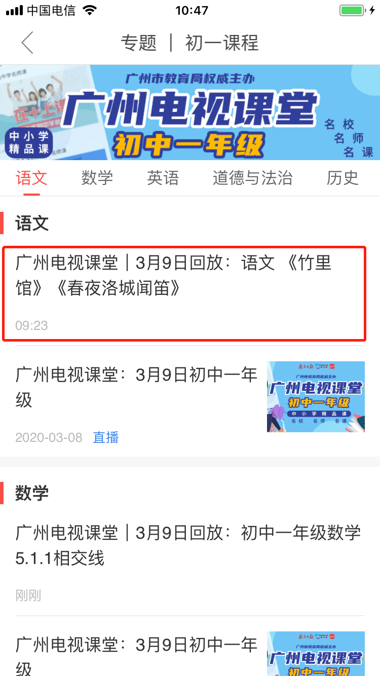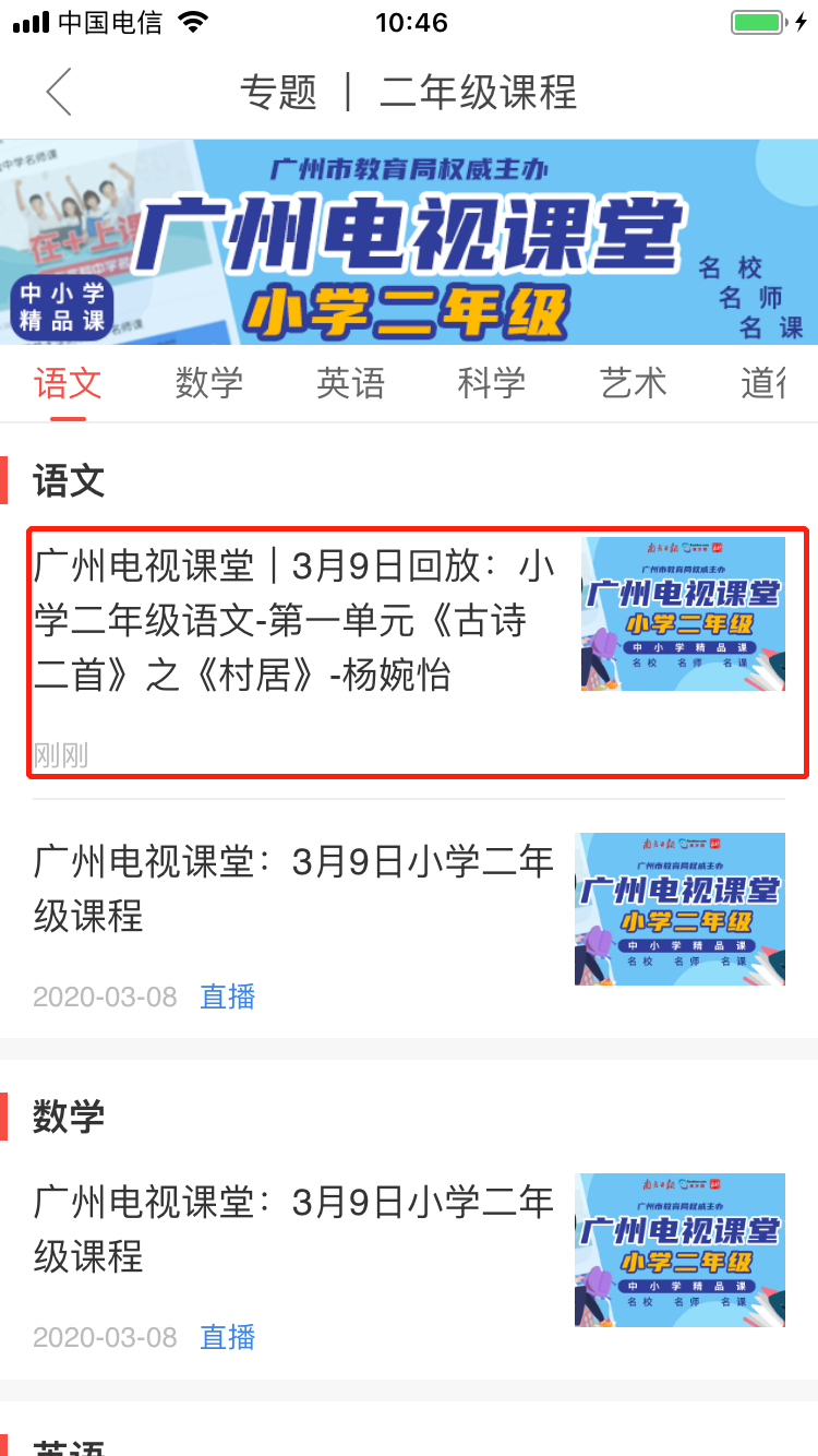 进入每个年级的页面,语文、数学、英语等每堂课单独回放陆续上线!