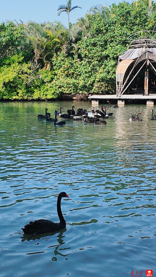 除鹈鹕捕食的壮观场景外,园区内还栖息着火烈鸟、孔雀、黑天鹅等多种珍稀鸟类。它们悠然栖居于湿地之间,与自然融为一体,构成一幅幅和谐的生动画卷。