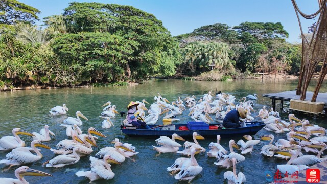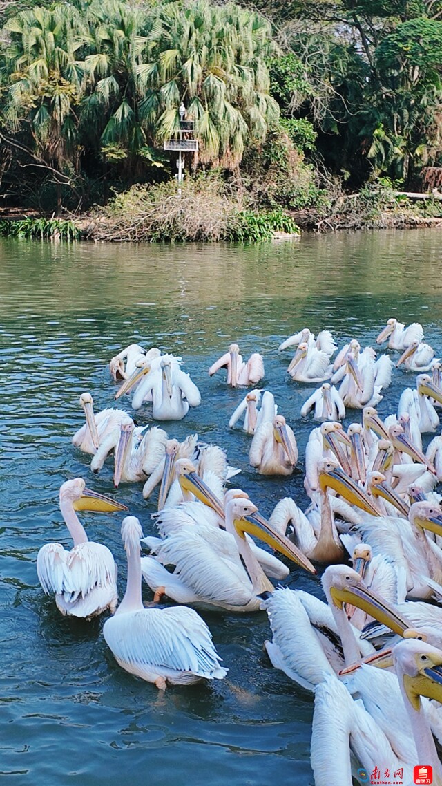 “干饭”不积极,思想有问题?你见过鹈鹕“干饭”有多卖力吗?近日,在广州南沙水鸟世界生态园,这句话在鹈鹕群身上得到了充分体现。它们张开硕大喉囊,在水中激烈争抢食物,上演了一场生动的“干饭”大戏,引得游客纷纷驻足,展现出湿地生态中蓬勃的自然野趣。