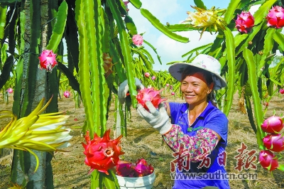 今年火龙果丰收,湛江遂溪那仙村村民喜笑颜开。