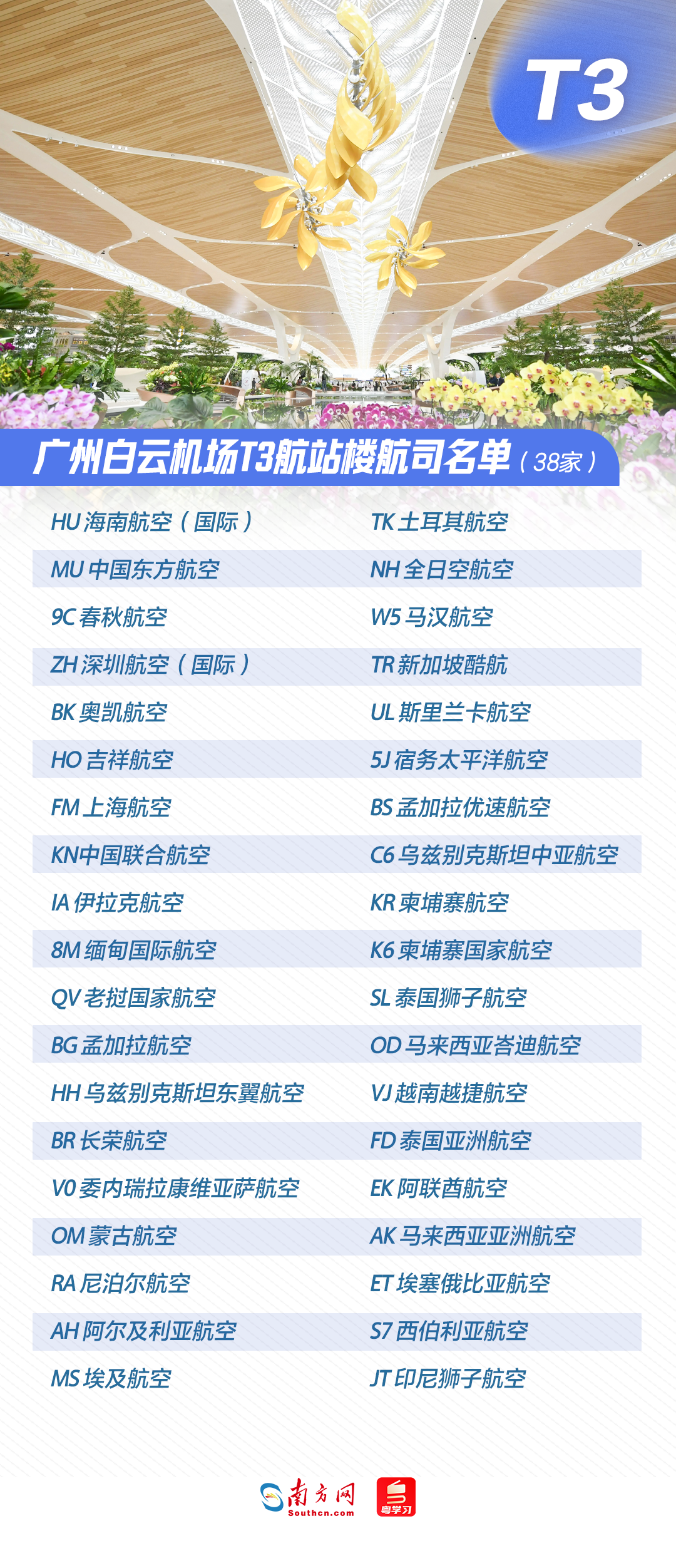 随着各学校陆续放寒假、春节也日益临近,不少市民计划出行。从广州白云机场出发的旅客注意啦,1月22日起,T1航站楼航司分批转场。为了让行程更顺畅,出行前务必确认航班所属航站楼。你的航班究竟在哪个航站楼起降?速览海报。