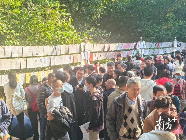 “相亲墙的挂绳早就满员了,我们排不上号,就想出了这个办法。”家长们介绍,伞面平整、面积适中,适合张贴A4过塑简历;撑开即占地,无需额外工具,可灵活排列成“摊位”,形成百米相亲长廊。加之广州多雨、日晒强,伞可遮阳避雨,轻便易携、随来随设,收放快。家长们称彼此为“相友”,伞成彼此识别与社交的符号。