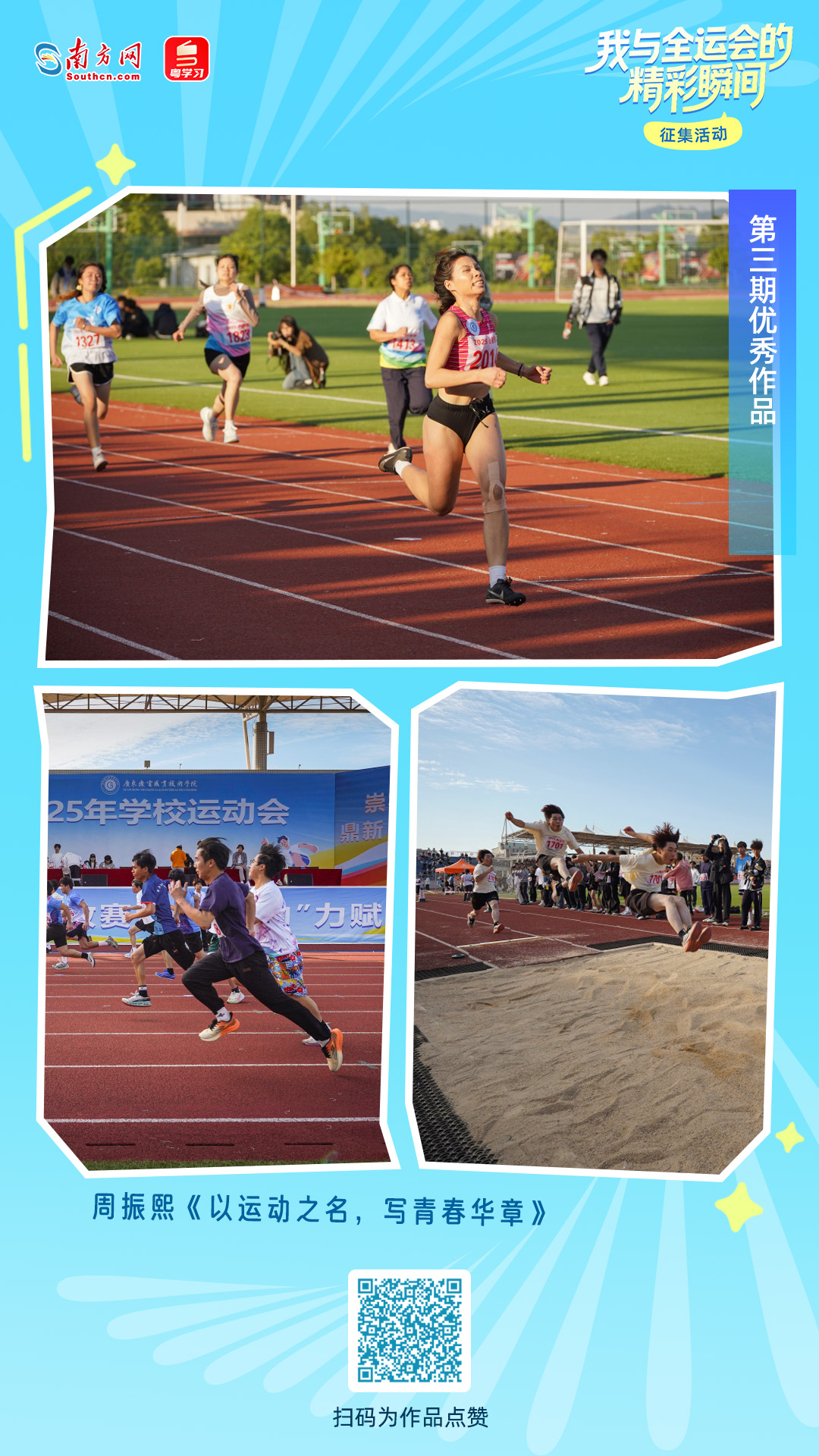 十五运会虽已落幕,但盛会点燃的运动热情仍在粤港澳三地延续。12月,“我与全运会的精彩瞬间”征集活动仍在开展,第三期周评以“全民运动的体育热潮”为主题,共评选出十件优秀作品,涵盖从小学生到老年人的多元运动场景,生动呈现青春洋溢、全民参与的体育精神。