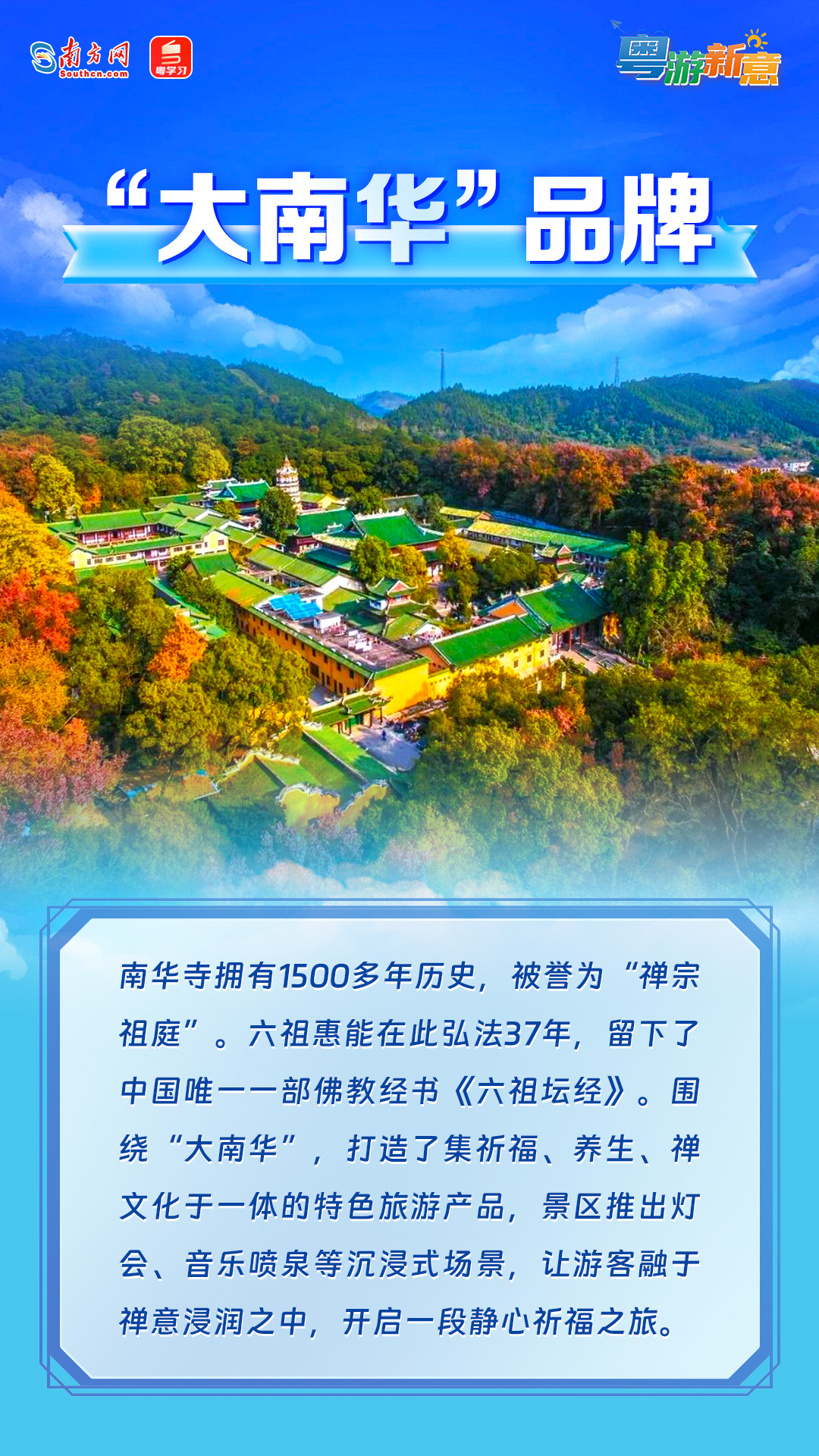 韶关文旅资源底蕴深厚、特色鲜明,特别是“大丹霞、大南华、大珠玑、大南岭”四大品牌,勾勒出粤北独有的山水文脉画卷,为游客带来沉浸式的文旅体验。