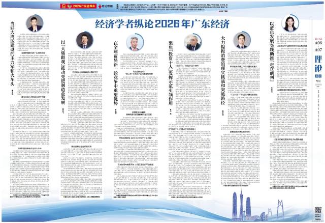 锐始者必图其终,成功者先计于始。今年是“十五五”开局之年,做好经济工作至关重要。在广东省两会召开之际,围绕广东走在前、作示范、挑大梁,确保“十五五”开好局、起好步这一主题,南方日报、南方+客户端特邀来自中央党校、北京大学、中山大学等知名高校和科研院所的多位经济学者,围绕广东当好大湾区建设的主力军和火车头、加快建设现代化产业体系、推动外贸高质量发展等重点工作把脉支招,敬请关注。