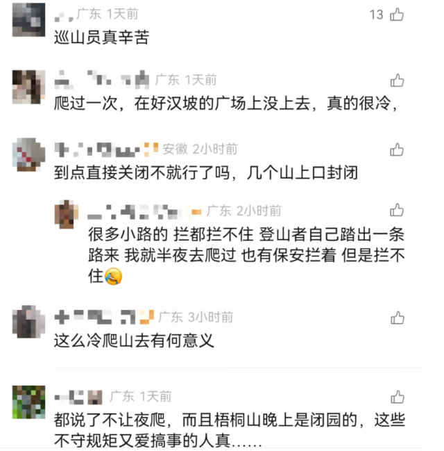 对此,不少网友表示“都说了不让夜爬却不守规矩”“巡山员真辛苦”……
