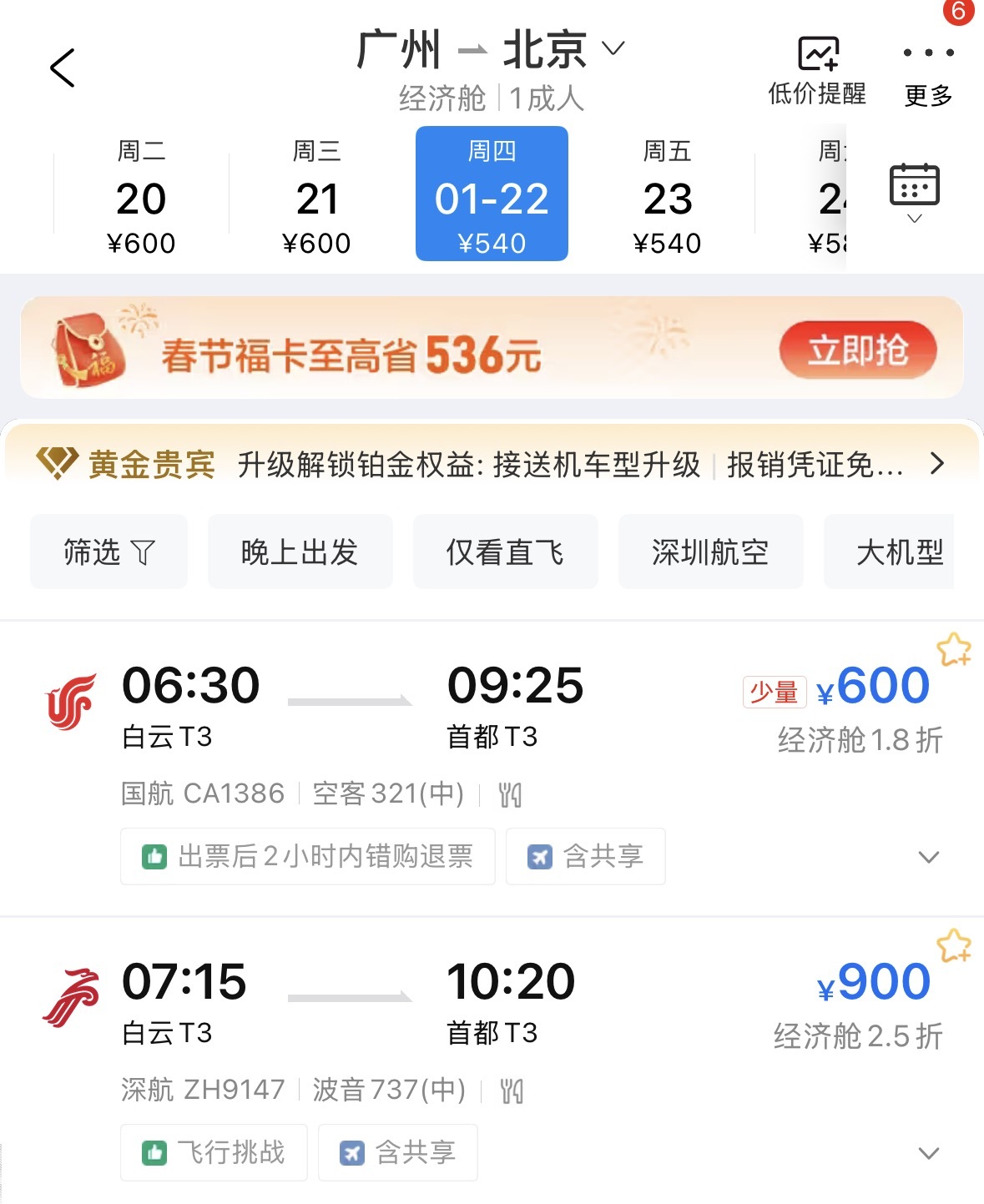 此前,白云机场已经于1月9日发布公告称1月21日—22日,白云机场T1航站楼的所有航司将有序切换至T3航站楼运营。记者在OTA平台上看到,1月22日国航等航司航班此前已改为在T3航站楼,目前尚未改回T1。
