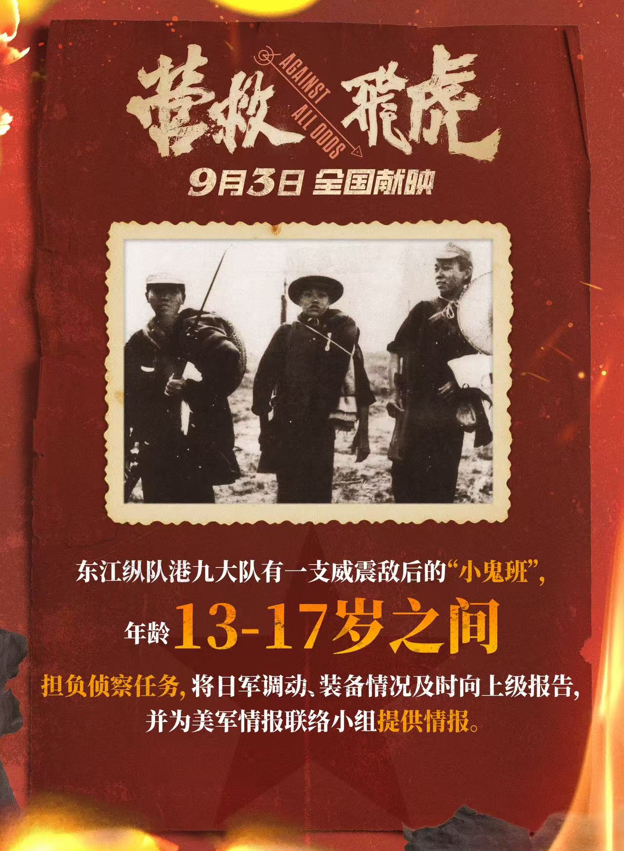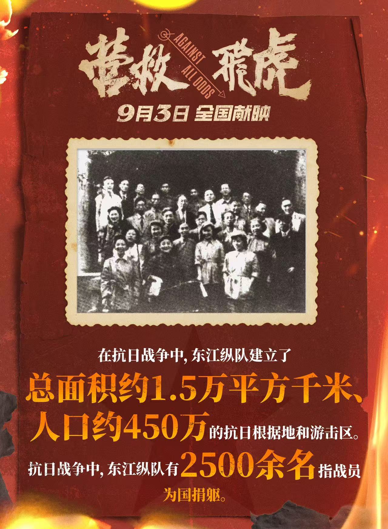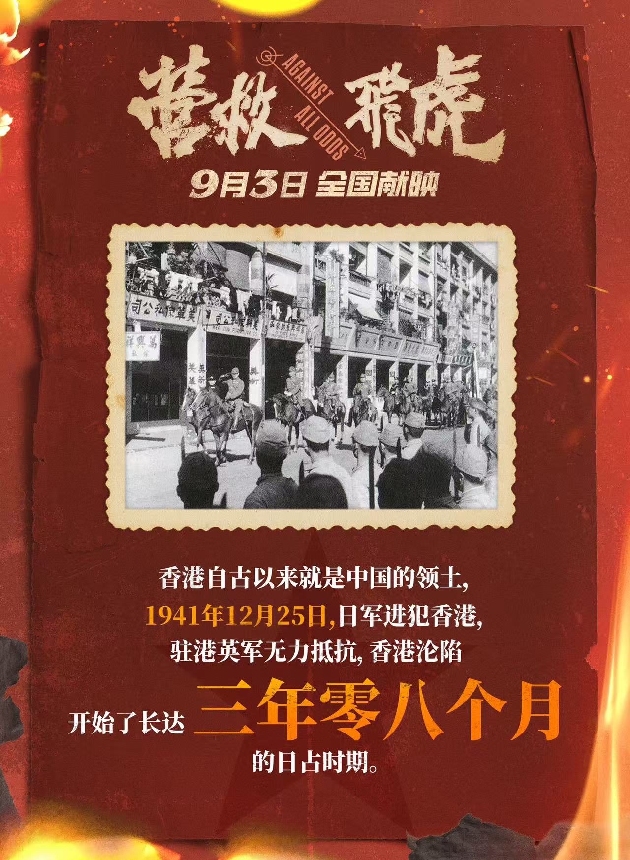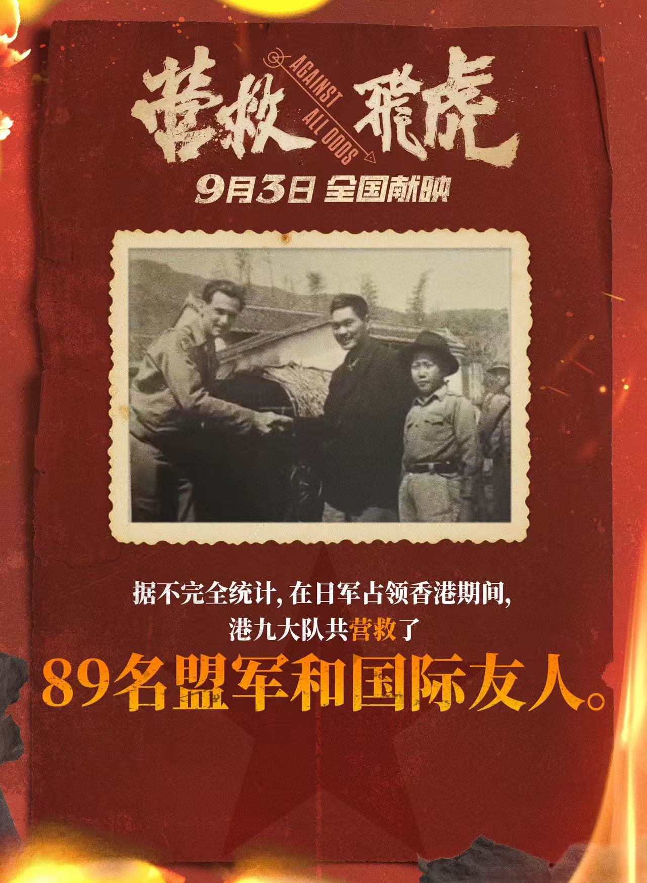 1941年12月25日,香港沦陷于日寇铁蹄之下。在香港长达三年零八个月的黑暗时期,东江纵队港九大队是唯一成建制且坚持抵抗直至抗战胜利的武装队伍。孤悬敌后的东纵港九大队在日伪军夹击的环境下浴血奋战,袭击日军据点,截击日军运输队伍,成功营救包括遇袭美军“飞虎队”队员在内的数十名盟军飞行员与国际友人。电影《营救飞虎》的核心情节——营救被日军击落的美军飞行员,正是取材自这一段真实抗战传奇。