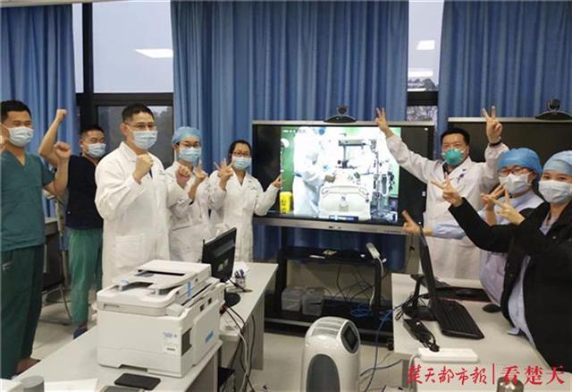 危重症患者拔管成功,张挪富(右三)与队员们欢呼庆祝