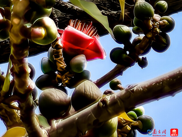 这株被誉为“中国最美木棉”的古树,是广州人心目中的自然地标与情感图腾。此次非常罕见于1月28日开花,不仅较往年提前近一周,而且双花同开的现象尤为罕见,专家推测与近期温暖少雨的气候条件及精细化养护密不可分。
