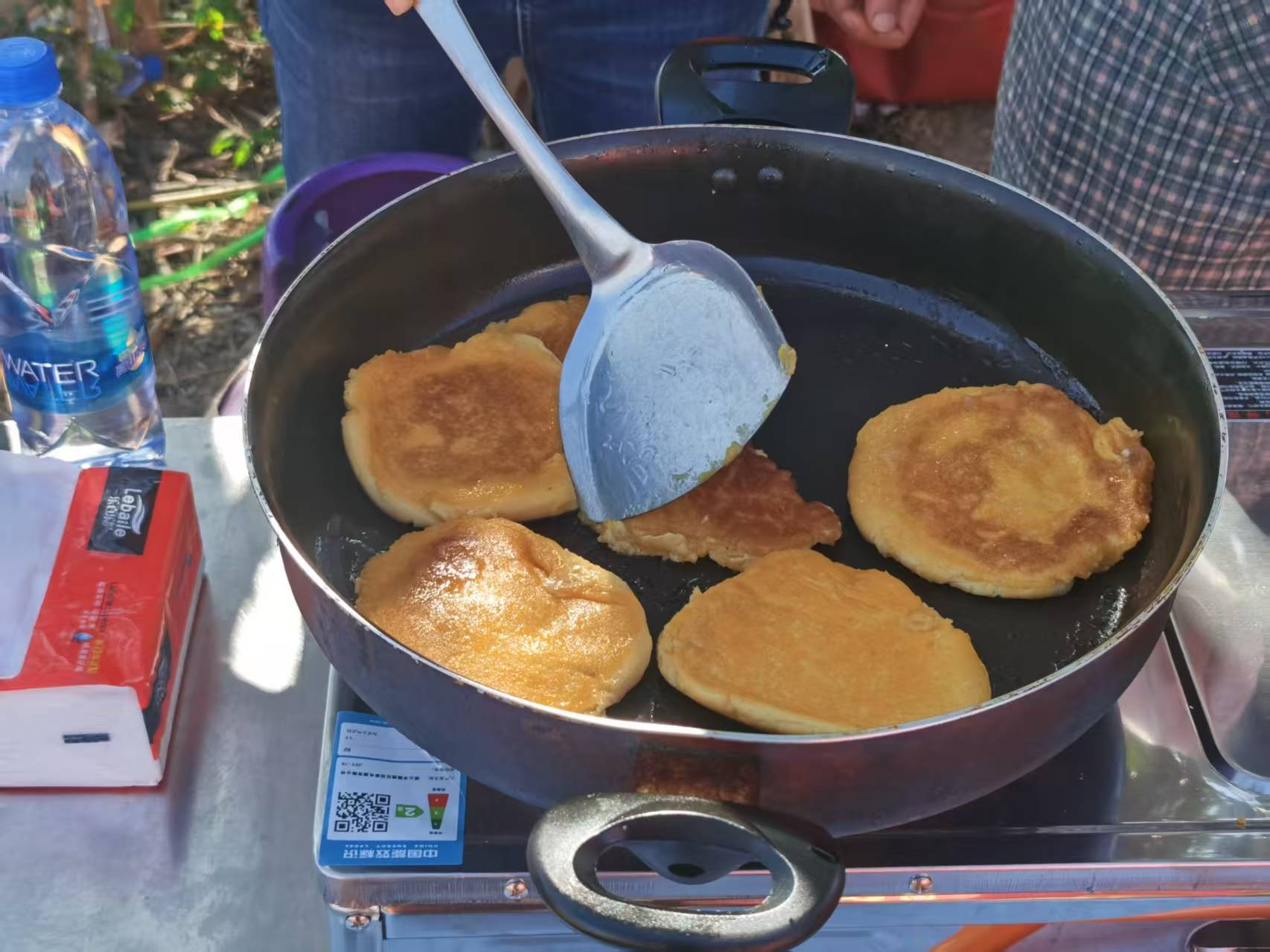 农产品展示区里,石坝番薯、本地特色农产琳琅满目,游客们一边品尝番薯煎饼、烤番薯等特色美食,一边选购农特产,乡村集市的烟火气十足。