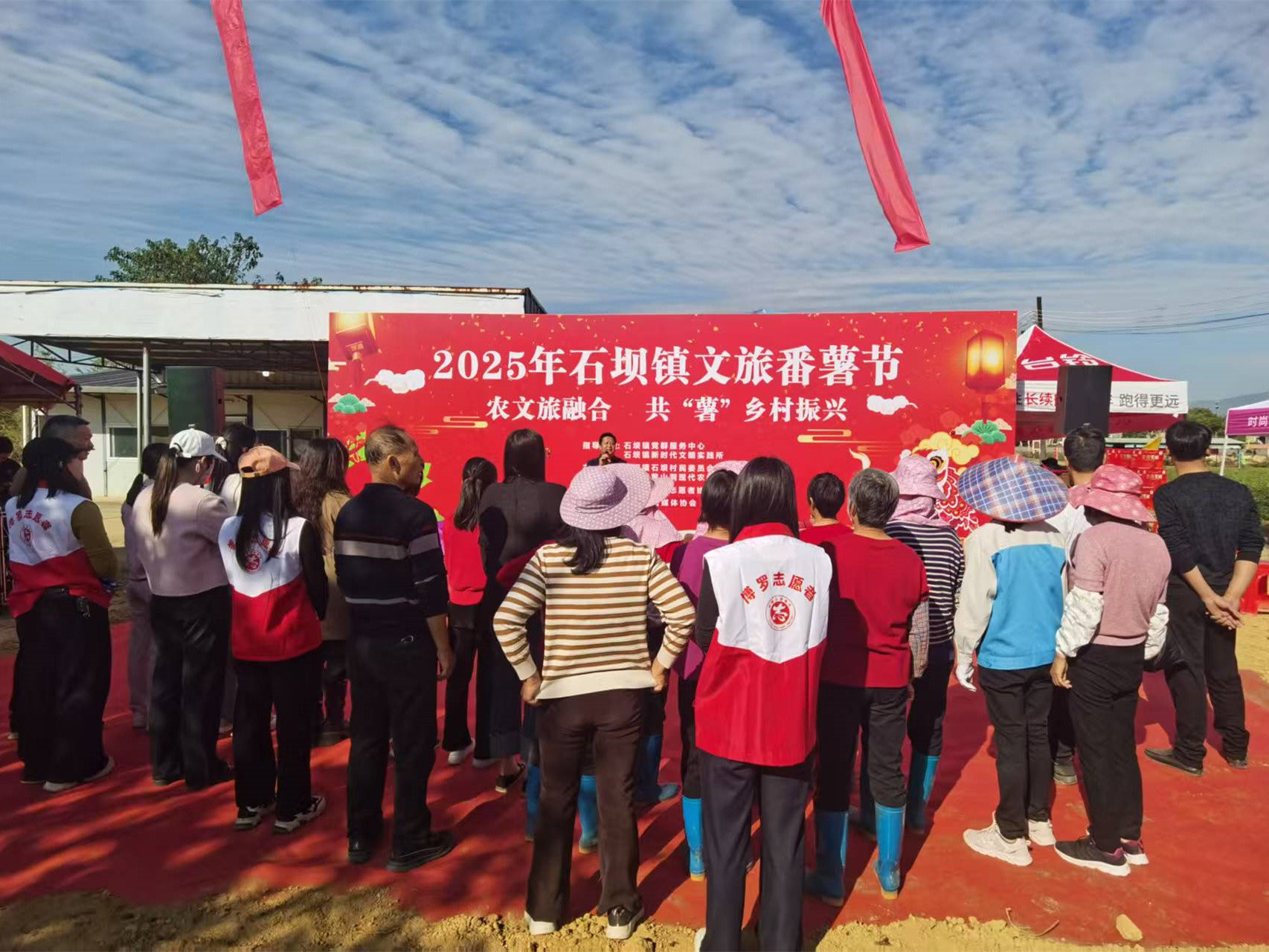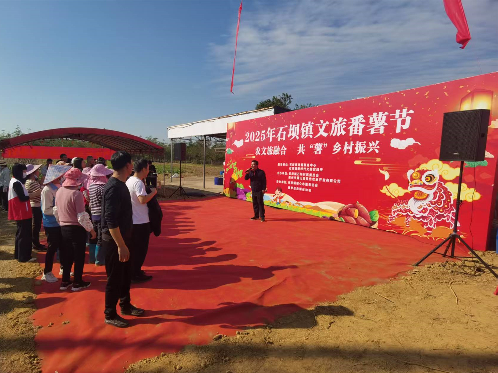 冬日暖阳下,番薯正飘香。12月17日上午,2025年石坝镇文旅番薯节在石坝村热闹启幕。本次活动由石坝镇党群服务中心、石坝镇新时代文明实践所指导,石坝村委、惠州市黄山洞现代农业开发有限公司主办,博罗县自媒体协会、石坝镇暖心志愿者协会协办,以“农文旅融合,共‘薯’乡村振兴”为主题,将番薯采摘体验、乡村文旅观光、农产品展销与助农直播相结合,让小小的番薯成为打开乡村振兴大门的“金钥匙”。