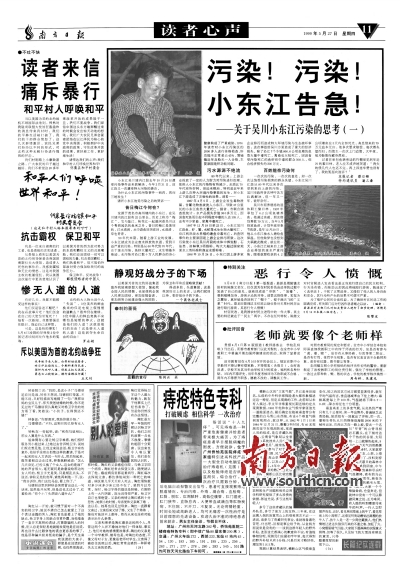 1999年5月27日,南方日报刊发《污染!污染!小东江告急!——关于吴川小东江污染的思考》。