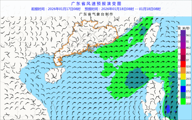 19-20日,粤东海面东北风7级阵风8级,粤中和粤西海面东北到东风5-6级阵风7级,台湾海峡、巴士海峡、南海东北部海面东北风7-8级阵风9级。