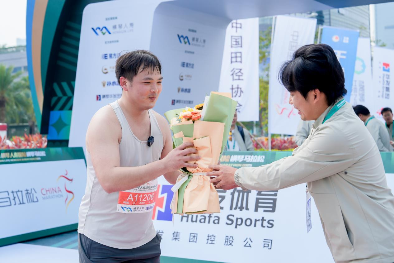 13时45分,最后一名跑者在“关门兔”的陪伴下抵达终点。工作人员早已列队欢迎,献上鲜花与掌声,这是横琴马拉松坚守多年的温情传统——不仅为胜利者喝彩,更向每一位坚持到底、永不言弃的跑者致敬。