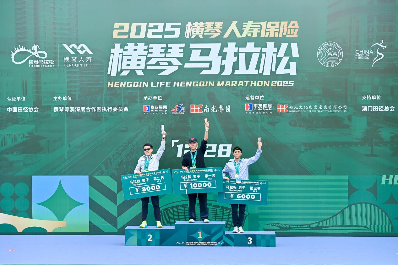 经过激烈角逐,2025横琴马拉松男子组冠军由朱家林以2小时25分38秒的成绩夺得,崔家乐、万磊分别获得亚军和季军。