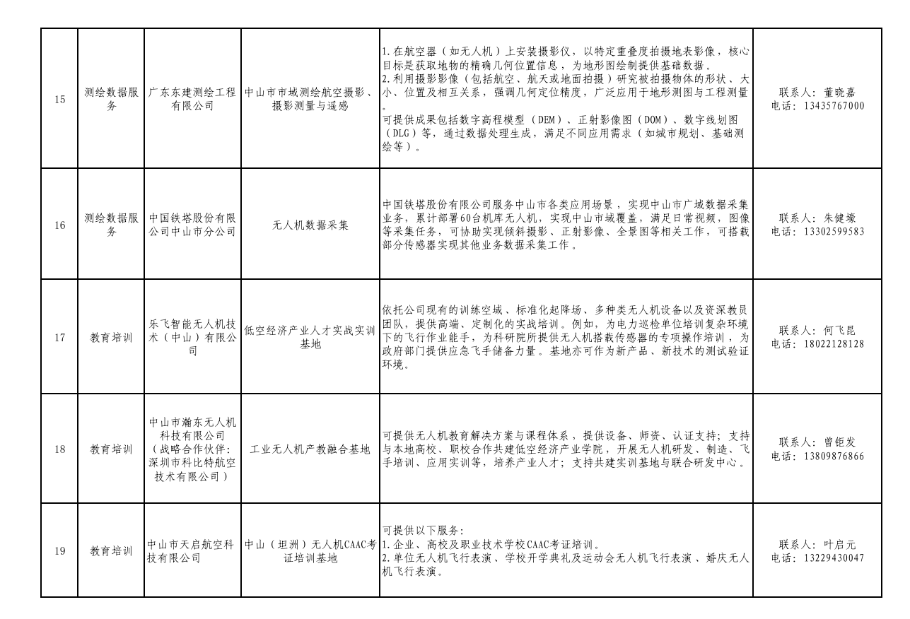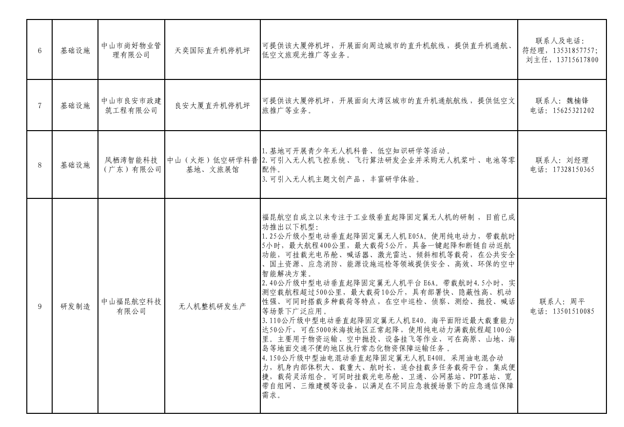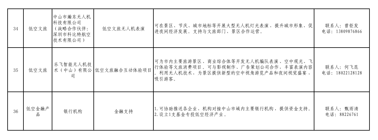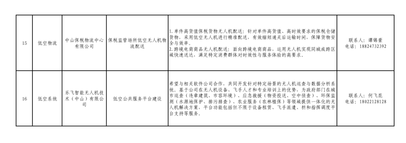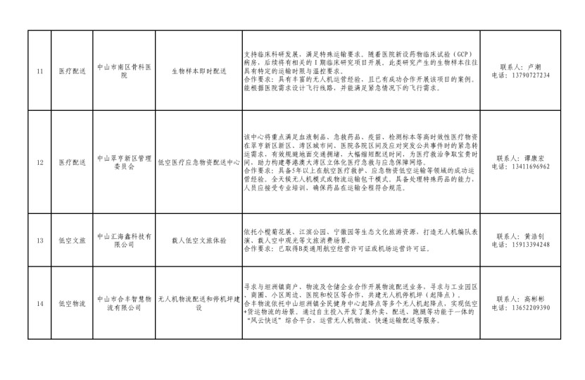 清单充分展现了中山在低空经济领域扎实的全链条产业基础,以及主动开放应用场景、推动产业协同发展的迫切期待。其中,场景需求清单聚焦16项实际需求,覆盖公共服务、医疗配送、低空文旅、低空物流、低空系统等领域;场景供给清单则汇集36项供给能力,涵盖基础设施、研发制造、综合服务、测绘数据服务、教育培训、试飞验证、解决方案、公共服务、低空物流、仓储、低空文旅、低空金融产品等各产业链环节。