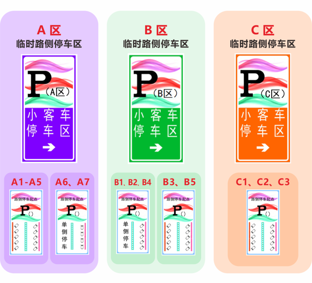 公安交管部门将视观众停车场饱和情况临时开放路侧停车区(分A、B、C区),请按路侧指示牌指引及现场工作人员指挥停放车辆,届时主办方将安排免费摆渡车(分A、B、C线)接送至场馆附近。