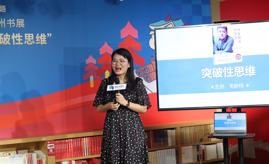 2021南国书香节暨第十一届惠州书展的“奋斗之路与新征程离不开突破性思维”读书分享会环节,樊登读书惠州运营中心讲师毛妙玲与大家分享了突破性思维对社会、个人的意义和作用,并推荐了相关书目。