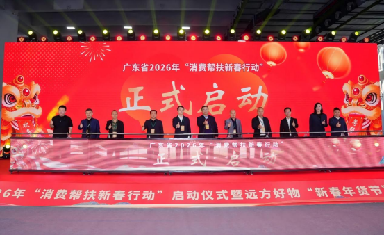 2025年12月29日,在广东省发展改革委等多部门指导下,广东省2026年“消费帮扶新春行动”启动仪式暨“新春年货节”展销推介活动在广交会展馆B区顺利举行。活动以“欢喜过大年 粤帮粤给力”为主题,汇聚广东对口帮扶支援合作地区、省“百千万工程”被帮扶县(市、区)等地超300家企业参与,共同见证消费帮扶领域的创新实践与丰硕成果。