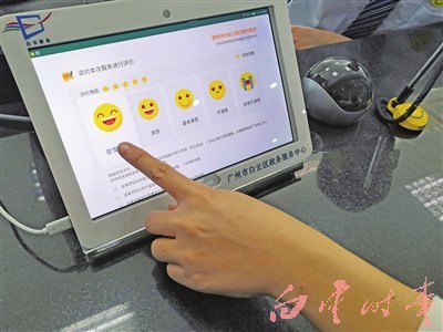 白云时事讯(文/图 张智虹 通讯员/郑刚)市民群众对政务服务机构与相关工作人员的评价,是促进政务服务质量提升、推动政务服务平台建设的关键因素。记者日前了解到,目前,广州白云区政务服务“好差评”2.0版已经全面上线,政务服务好不好,可通过平板电脑点击评价,也可扫二维码进行“打分”。